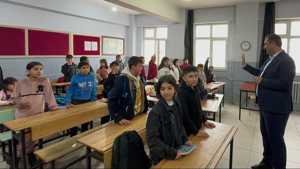 Serkan Ramanlı, Cumhuriyet Ortaokulu’nda bir sınıfa girerek Kürtçe dersi verdi.