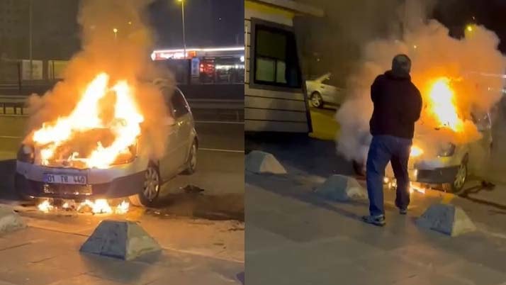 Bu sırada, vatandaşlar arabanın içinde uyuyan sürücüyü uyandırarak alevlerden kurtulmasını sağladı.